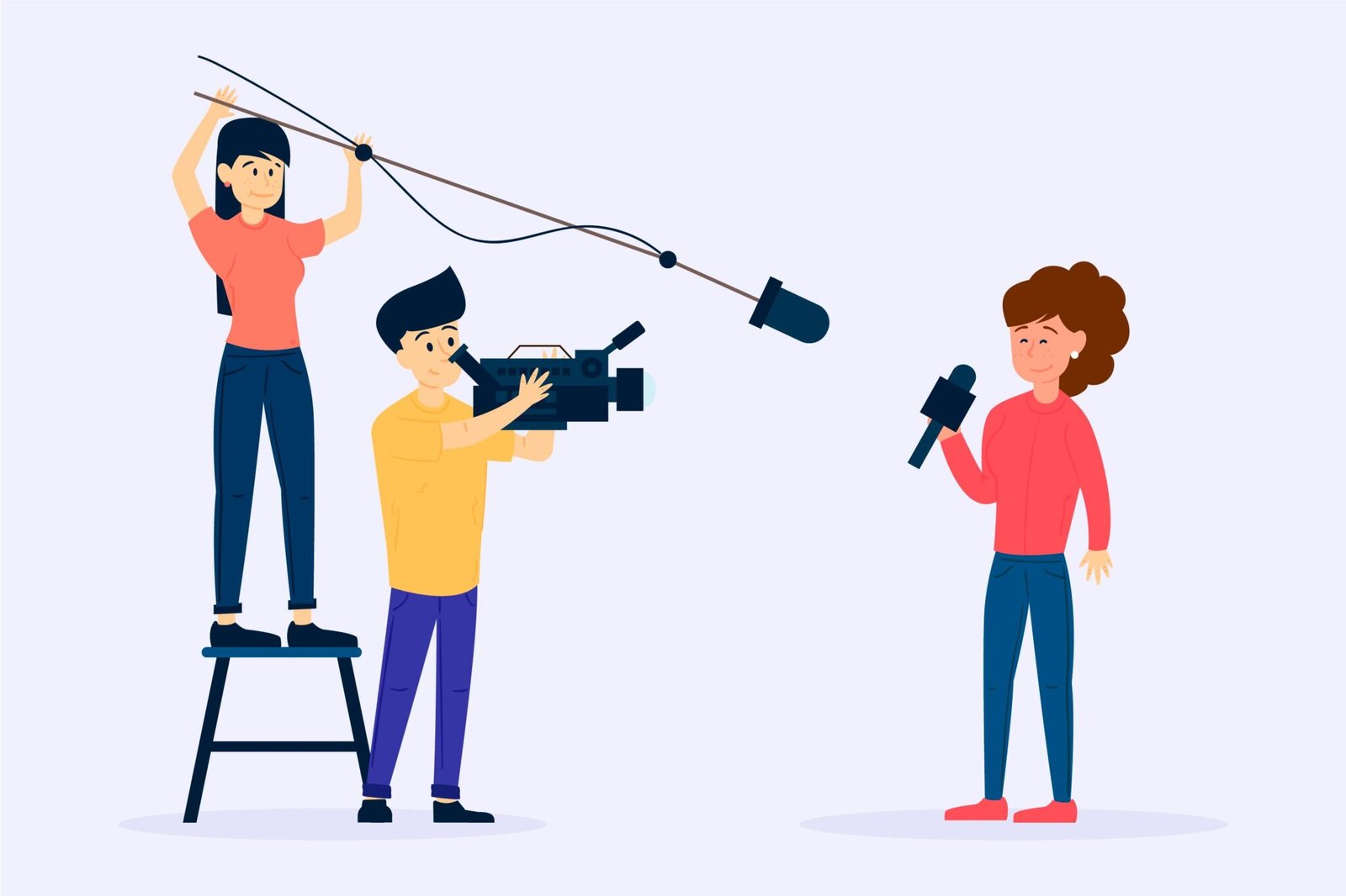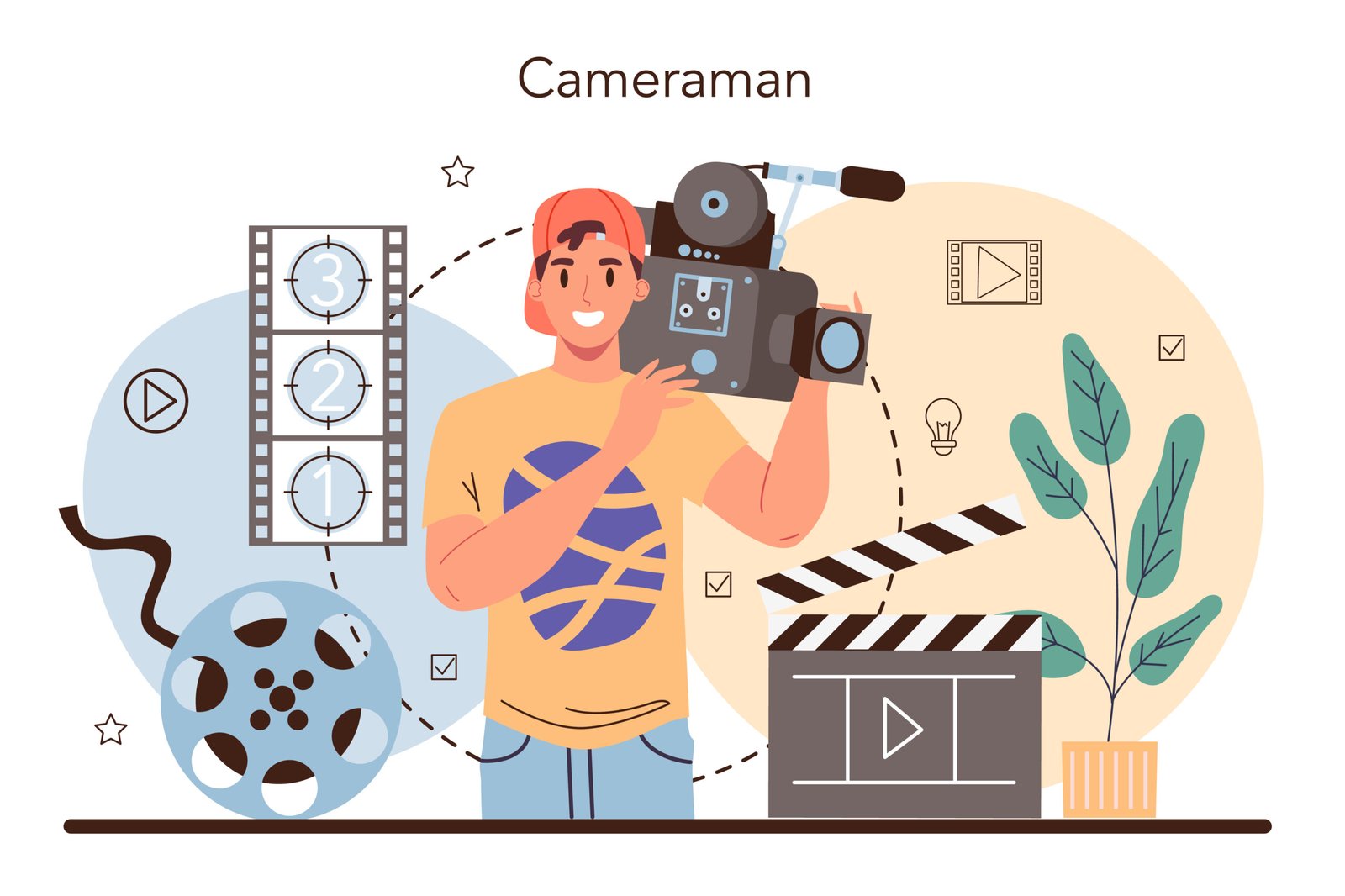Videographer concept. Video production, filming and editing. Cameraman or motion designer. Making visual content for media with special equipment. Flat vector illustration